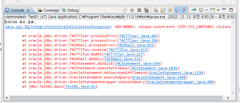 Programming/Error & Exception SQLIntegrityConstraintViolationException cdv 2022. 12. 13. 15:30 에러 원인: DB에서 발생하는 오류인데 PK로 지정된 칼럼에 값을 넣게 되면 생기는 오류입니다. 해결방법 : 테이블을 확인해 제약조건이 있는 경우를 확인해야 한다. 값을 INSERT할떄 넣지 않으면 된다. 공유하기 게시글 관리 cochon_dev 저작자표시 (새창열림) 'Programming/Error & Exception' Related Articles SQLException SQLSyntaxErrorException IndexOutOfBoundsException StackOverflow